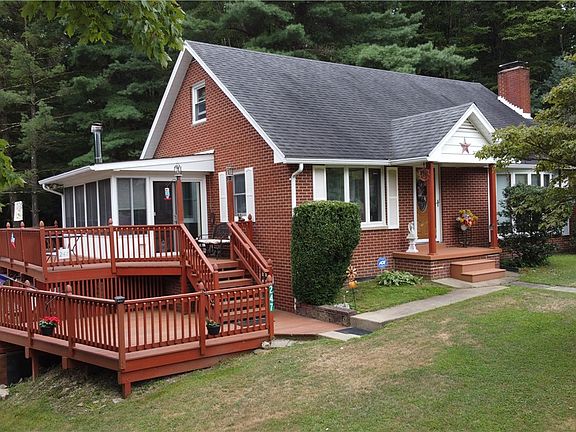 **ON NATURE'S DOORSTEP** is where you will find your new home. This beautiful brick home sits on 1.36 acres surrounded by of all that Mother Nature has to offer; mature trees, a small stream and plenty of space to stretch out. Watch the seasons unfold from your bi-level deck. Store your gas powered possessions in one of 3 garages - one attached to the home and two separate detached garages - GARAGE SPACE GALORE! Inside, you find a first floor bedroom; full bathroom; a charming eat-in kitchen; sizable dining room; as well as a sunken living room. Upstairs provides 2 bedrooms and a full bath. The lower level provides apartment style living with a bedroom; bath; living room; kitchen; laundry and plenty of extra storage space. This home grants you the simplicity of nature and the space you have been waiting for!