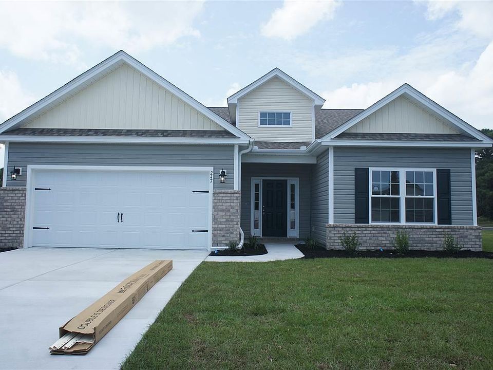Beautiful Fripp floor plan in the new Ocean Palms community, with a five month build time from contract to close. Purchase early and choose all of your own colors! This terrific open floor plan, 3 bedroom, 2 full bath home will come standard with vinyl flooring in the family room, kitchen and dining area, under the soaring vaulted ceiling, and comfortable carpet in the bedrooms. Stainless appliances, staggered-height stained birch cabinetry and a convenient breakfast bar combine to give you the wow factor you're looking for, and abundant recessed lighting plus two large windows in the adjacent dining area flood the room with light. A French door at the back wall of the family room leads to the screened rear porch and the large separate patio beyond. The spacious master retreat features a long vanity, an oversized walk-in shower, plenty of storage in the linen closet and a huge walk-in closet. Two additional bedrooms and a full bath are tucked off on their own hallway, for privacy. All of the homes in Ocean Palms come standard with the luxury of natural gas (tankless water heater, gas heat, and gas range). The two car garage is completely trimmed and painted, and a floored attic storage space is accessed by drop-down stairs. Ocean Palms is conveniently located near shopping, restaurants, schools and world class medical offices and hospitals, and only a short golf cart ride to Surfside Beach's gorgeous beach and the beautiful Atlantic Ocean. Other floor plans and inventory homes may be available, and CUSTOMIZATION OF FLOOR PLANS IS POSSIBLE!!! Community Pool and Cabana Coming Soon! Photos are of a completed, similar home in another neighborhood and may have different features.