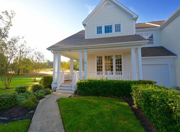 Largest townhome homesite in the community, this private home is located at the end of a culdesac with not only a large rear yard with pond views, but side yard as well as a community open space ideal for kids play or pets in front. Pride of ownership, this home is pristine with hardwood flooring throughout first floor, brand new stainless appliances with upgraded cabinets. Gas fireplace in this great room with first floor master bedroom ensuite and separate den/study or office. Upstairs is host to a second master bedroom ensuite with 2 guest bedrooms shared with a jack and jill full bath. Oversized screen porch enjoys amazing sunsets over the pond and lush landscaping. Move in ready and sold beautifully furnished . Its time to enjoy your own beach retreat.
