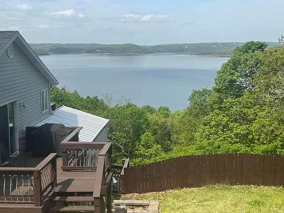 Step inside the front door to experience a breathtaking view of the lake in this gorgeous home. Tucked away inside the well-named Panorama Point development, at the end of a tree-lined private drive, the home feels very private and secluded. It is very private, but it is also just minutes away from everything Branson and Hollister have to offer.Step out the back door to walk the shore of Table Rock Lake in your back yard, which includes 182 feet of shoreline. Enjoy life here year-round or on weekends and holidays. Two large, wrap-around decks offer plenty of seating for family and friends, as well as two outdoor fire pits, and a grill just outside the kitchen and dining room.There is a privacy fence, perfect for keeping kids and pets safe, and plenty of parking for all your guests on a beautiful concrete driveway. Open the gate to take a golf cart ride down a private path to your private shoreline, or to the docks. A storage shed for toys and a larger shed for a riding mower or off-road vehicle are included with the property.Inside, the home has fresh updates: all new flooring, fresh paint, a new kitchen sink, new faucets, and many, many extras. The kitchen features granite counter tops and plenty of storage drawers and cabinets. In the master bath, you'll find a walk-in shower with bench seat, double shower heads, and a view of the lake! Upstairs there is a wood burning fireplace and downstairs there is a wood burning stove to keep the whole home warm. Behind the wet bar downstairs is bonus storage, which may be used as a wine room or storm shelter, or both.Exterior updates include new siding, new roof, and a freshly stained rebuilt deck. The privacy fence has also been freshly stained.