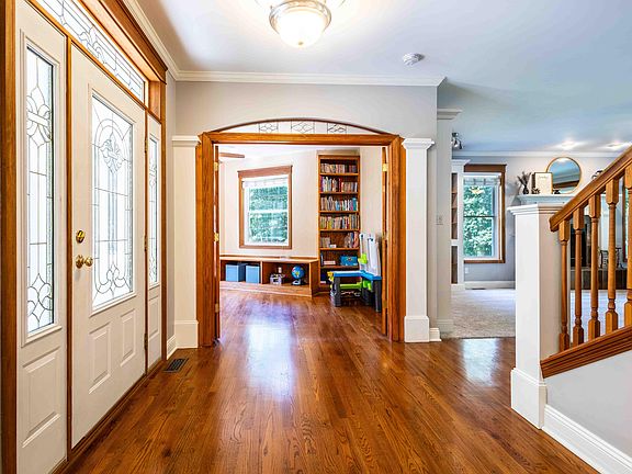 Discover your dream home in this luxurious six-bedroom retreat, perfectly situated on a serene 1.17-acre wooded lot. This home offers a blend of comfort and sophistication, beginning with an expansive main floor. Enjoy an oversized living room, a spacious office with built-in bookshelves, and a large kitchen equipped with an island and pantry. A formal dining room and convenient half-bath complete the main level, making it perfect for both daily living and entertaining. Upstairs, you'll find five generously-sized bedrooms, including a stunning primary suite with an ensuite bathroom and a massive walk-in closet. Each of the additional bedrooms includes a walk-in closet, and two of the bedrooms share a full ensuite bathroom. A third bathroom is in the hallway, and the upper level is completed with a convenient finished laundry room. The finished daylight basement extends your living space, featuring a huge recreation room with a wet bar, a full bathroom, a sixth bedroom, and a second laundry area. An additional 250 square feet of unfinished space offers excellent storage or storm shelter options. Step outside to your private backyard oasis, where an in-ground pool, a pergola with fire tables, a hardscape patio, and a composite deck await. The wooded lot ensures privacy and a tranquil atmosphere for ultimate relaxation. Located in a charming neighborhood in Northwest Valparaiso, this home offers peace and convenience. With high-speed internet, location in the highly rated Duneland School District, and easy access to major commuting routes, this residence is as practical as it is beautiful. Just 15 minutes from the South Shore Commuter Rail Dune Park station and 10 minutes from I-94, it's the perfect blend of serenity and accessibility. Make this extraordinary home yours and elevate your everyday living!