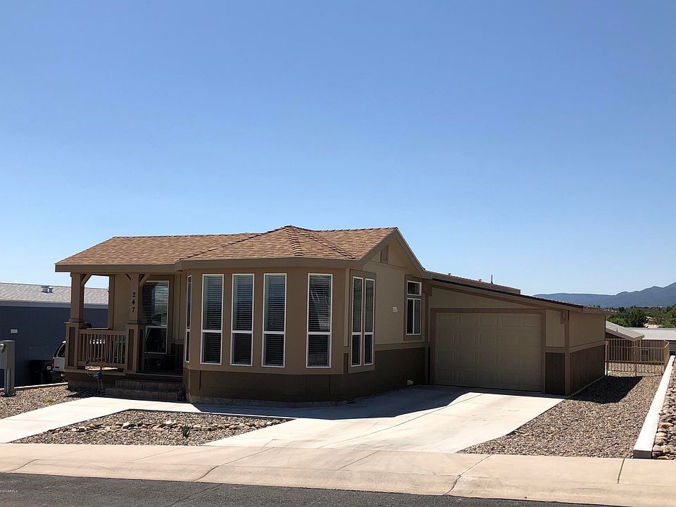 Views, Views and more Views from this centrally located 3 bed 2 bath 2017 Cavco model home at approx. 1567 sq. ft. with newly attached garage with front & rear covered patios to take in the great views of Mingus Mtn. & the Red Rocks of Sedona. Enjoy the very open and inviting kitchen/living room combo. Kitchen features nice large center island/breakfast bar with plenty of counter space and lots of rich cabinetry. Sit in the dining area and enjoy the views out the bay windows that emanate lots of natural light. Enjoy waking out to the covered screened in patio from the master bedroom and enjoy the views without being annoyed by the bugs in the fenced in back yard. Master bathroom has two sinks and a very large and inviting tiled walk-in shower. What are you waiting for? Bring all Offers.