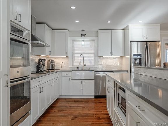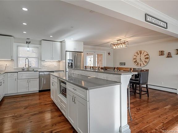 Make sure you schedule a showing for this beautiful raised ranch with open floor plan and updates. This 3 bedroom 2.5 bath home is drenched in natural sunlight facing eastern exposure for breathtaking sunrises. The open kitchen to dining and living room offers hardwood floors, recessed lighting, updated light fixtures and a large quartz counter island. This home is ideal for entertaining with an enclosed sunroom complete with a wood stove for all-year-round use. Don't miss the primary suite with a full bath including a whirlpool tub, double sink vanity, stall shower and walk in closet. The lower level offers a carpeted family room with half bath, wood burning fireplace and a laundry room. The convenient under house 2 car garage offers tons of space for parking and storage. Be sure to take a walk around the exterior to see the back deck, ideal for grilling or al fresco dining and walk up the stairs to find the level portion of the yard with incredible views, perfect for yard games or Adirondack chairs to admire the view. HIGHEST AND BEST DUE MONDAY MARCH 28, 2022 BY 9:00am