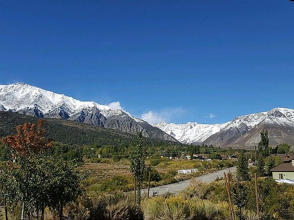 Incredible views!! Large custom built home located in Crowley Lake, just 15 minutes to Mammoth Mountain. Entry level features living room, 2 bedrooms (one with walk-in closet and jacuzzi tub), 3 bathrooms, laundry room and attached 1000sq ft 3 car garage. Upper level features Expansive great room with wood flooring, dining room, master bedroom and bath (with jacuzzi tub) 1/2 bath and office. Kitchen has wood cabinetry, stainless steel appliances, Wolf oven, walk-in pantry and ceramic tile floors . Two huge decks with new Trex decking. There is extensive tile work in the property but some incomplete tile work. Tons of sun on entry, driveway and main deck. Beautiful views of snow-capped mountains and wetlands. Enjoy the sounds of the creek from the back deck.