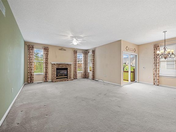 BEAUTIFUL home in the highly desirable Heritage of Hawk Ridge 55+ community! Enjoy the 9-hole golf course, clubhouse, pool, tennis, pickle ball, fitness center, restaurant & other fun community activities. This original owner 2BR 2BTH villa w/1626 SF is just a short walk to the clubhouse. The exterior offers beautiful curb appeal w/brick & vinyl front, lush landscaping & 2 car garage. Walking in you'll notice the open floor plan w/the spacious living rm featuring a gas FP flanked by windows & opens to the dining rm w/slider to the covered deck perfect for outdoor enjoyment. The eat-in kitchen offers 42" cabinetry, granite countertops, tile backsplash, pantry & bkft rm. The master suite offers a walk-in closet & deluxe full bath w/dbl sink vanity, soaking tub & shower. Additional BR, full bath & private laundry complete the main. This gated community is conveniently located w/easy access to major hwys, shopping & restaurants. Home is being sold AS-IS, but very livable. Priced to sell! Location: End Unit, Ground Level, Suburban