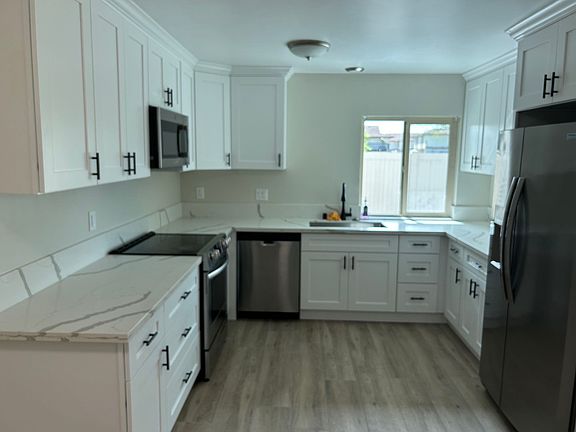 FULLY REMODELED! NEW KITCHEN, BATH, FLOORING, DUAL PANE WINDOWS. Beautiful two-story 4 bed / 2 bath townhome with 300 square foot outside private patio. Hardwood and tile floors throughout. 1 bedroom and 1 bathroom on first floor, 3 bedrooms and 1 bathroom on second story. Strong credit and income of 2.5x rent required. Looking for tenant with good job, rental history, and credit. Quiet community with beautiful landscaping and grassy areas. Across the street from beautiful nature trail and estuary for hiking. Complex has nice pool and jacuzzi. Unit includes: 2 designated parking spots (1 covered), Washer/dryer, refrigerator, dishwasher Owner pays for trash. Tenant pays for electric, gas, water. Owner pays HOA and trash. Tenant pays for power and water.