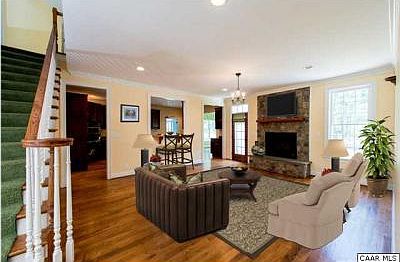 Located on 3 acres close to shopping, restaurants and easy access to airport, Rt. 29 and Medical Center. Features include sport court, hot tub, firepit and level rear yard. Gourmet kitchen with cherry cabinets, granite countertops, triple stainless sink and center island. 5-6 bedrooms, 1st fl. master BR, open kitchen, great room and sun room. The walk-out lower level includes great room with fireplace, large home theater, bedroom and bath plus abundant storage. Mtn views of the Blue Ridge.