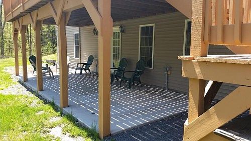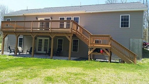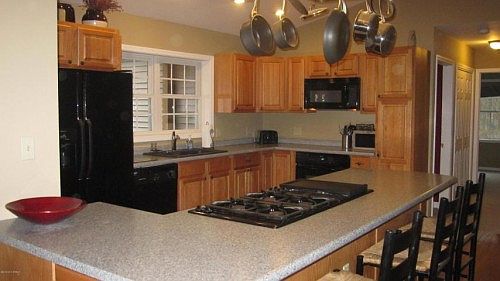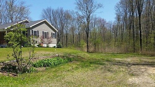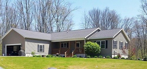 Open concept ranch style living with master suite separate from the other bedrooms. Front door foyer into great room with vaulted ceiling and dining area. First floor laundry, over sized garage and full length back deck. Lower level is finished, carpeted and has full walk out and full sized windows. Beautiful custom stone work with wood stove w/ clever storage/utility room & workshop. Freshly painted in warm contemporary colors, wood flooring and lots of natural light. Mature landscaping with sprinkler system surrounded by trees, perennials and fresh air. Septic just pumped, radon and pest inspections complete. Move in ready. Welcome Home.