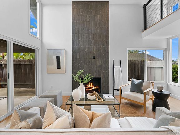 Welcome to this beautifully updated home in the heart of Encinitas, where modern style meets everyday comfort! Move-in ready and thoughtfully upgraded, this home has a fresh, contemporary feel from the moment you walk in. The kitchen shines with slim white shaker cabinets, quartz countertops, a full-height tile backsplash, brand-new stainless steel appliances, and stylish fixtures. Both bathrooms have been transformed with designer quality freestanding vanities, custom tile work, and spa-like finishes. Inside, you’ll find fresh interior paint, smooth wall texture, white oak style LVP flooring, and a new four-ton furnace. A designer’s touch is evident throughout, from the bold new front door and soaring ceilings to the striking floor-to-ceiling tiled fireplace and sleek cable handrails. The open layout includes a versatile loft with a built-in desk and a newly added laundry room with shaker cabinets. Updated lighting, new doors, mirrored closet doors, and upgraded hardware add to the home’s modern charm. Outside, the home boasts fresh landscaping, a stylish new slat facade, and a roof tune-up, enhancing its curb appeal. This rare 5-bedroom home comes with no HOA and is just minutes from top-rated beaches, schools, shopping, and dining—giving you easy access to everything Encinitas has to offer!