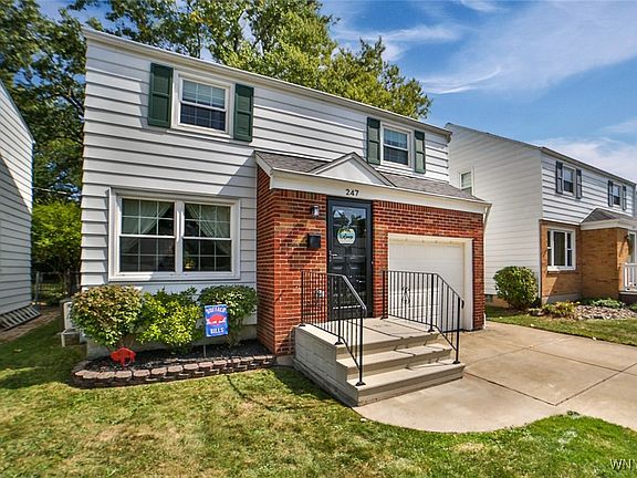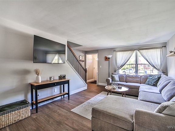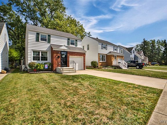 Welcome to this FANTASTIC Colonial in the excellent Amherst Central School District! So many updates: You are greeted by Luxury vinyl plank flooring (and new trim) in the Living/Dining rooms 2023! All new interior doors on 1st floor 2021. Completely remodeled kitchen in 2021 w/quartz counters, custom built soft close cabinetry, tiled floor (SS appliances included!). Convenient 1st floor half bath remodeled 2020. Gleaming hardwood floors upstairs w/updated full bath and 3 bedrooms, including huge walk-in closet in primary bedroom. Whole house furnace/central air plus wall split system in bedroom for extra comfort, and HWT, all in 2025 w/transferrable 10 yr warranty! Finished basement area w/recessed lighting, strong/dry poured foundation, and custom built entertainment console 2018 for all your sports/hangout needs! Newer tear-off roof 2016. New deck in 2019 overlooks the fully fenced backyard w/large shed (roof 2023) for extra storage. New pex plumbing 2022, attic insulation 2015, front porch 2017. LOW TAXES under 5k! Make this gem your new HOME! Showings begin immediately; open house, Sun, 11-1, offers due Tue, 9/23, by 3p.