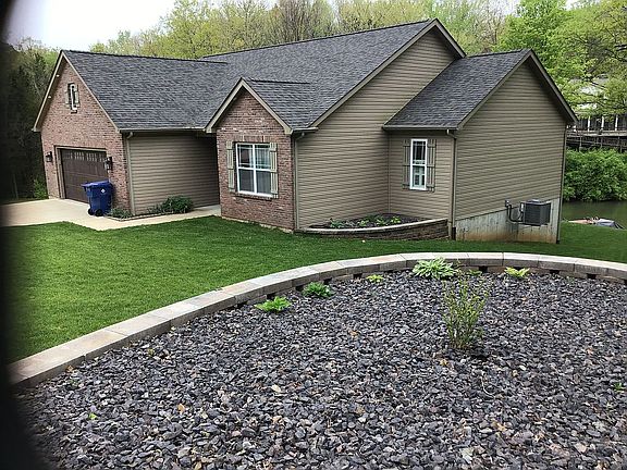 Immaculate 4 bdrm, 3 full bath ranch sits waterfront on Lac Carmel! Only 3 years old! Vaulted great room has hardwood floors, 5" base trim & electric fplc. Kitchen has upgraded cabinets, solid surface tops, crown mold, four stainless appliances, subway tile, under cabinet lighting & ceramic tile. Divided bdrm floor plan, 3 bdrms on main floor. Master bdrm features coffered ceiling, walk in closet & full bathroom w/ stand up shower. Levelor curtains. MF laundry. Covered cedar deck w/ black balusters & ceiling fans. 2 car attached garage. Finished LL has bedroom, full bath, and rec room. Walk out to covered patio & level yard. Lakeside features boat slip w/ ladder. Electric awning attached. French door out utility room for easy parking of golf cart. Water filtration system installed. LeafFilter gutter guard has lifetime transferrable warranty. Beautiful landscaping. Lots of storage space. Terre du Lac, private lake community hour south of St. Louis 16 lakes, fish, boat, swim, golf, CC.