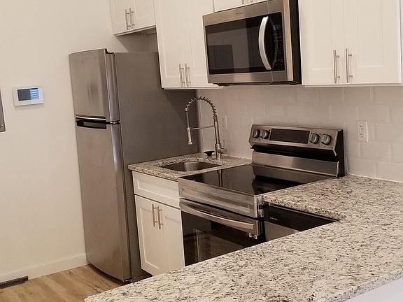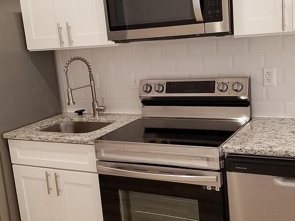 Washer and dryerHigh ceilingsWood floorsSeparate laundry closetStainless appliancesBar counter top kitchen
