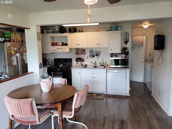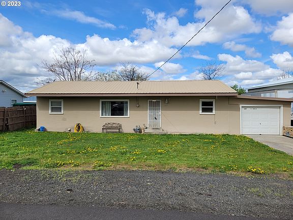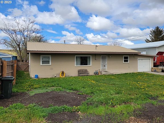 Set in the heart of Pilot Rock, this 3 bedroom, 2 bath, one level home, features a convenient floor plan with a spacious living area, open dining-kitchen, laundry space, and primary en-suite bedroom. Upgraded exterior features include metal roof, stucco siding and modern vinyl windows. Appreciate the attached garage with impressive built-in storage, and generous sized fenced back yard. Appliances included. Ready! Set! Go!