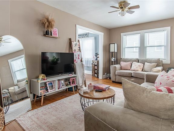 Ready to move into your dream home? This lovely 2 bedroom 1 bath home is nestled in a quiet city neighborhood. Spacious living room has original hardwood floors & plenty of natural light. Kitchen has a breakfast bar with plenty of storage underneath. Dining room is right off the kitchen with hardwood floors & sliding glass door to back yard. New steps recently added to back yard. Upstairs you will find two cozy bedrooms that offer a peaceful retreat. The 2nd bedroom has been recently updated. The Alpine wooden fence provides privacy in the back yard where you will find a concrete pad for entertaining. The enclosed 3 season porch gives you extended living space with plenty of windows. Spacious shed provides plenty of storage. Roof less than 6 years old. Short drive to Fort Drum & local amenities. Don't miss out on this gem. Closing will be contingent on seller finding suitable housing which is being actively sought. This home is back on market due to buyer financial issues