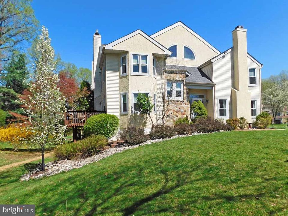 Welcome home to this meticulously kept three story townhome with NO monthly fees. Council Rock Schools a plus. It is an end unit that sits at the back of a cul-de-sac and backs up to protected land. Surrounded with gorgeous flowering trees allowing for privacy and tranquility. Many new upgrades include HVAC with 10 year warranty, kitchen, roof, windows and exterior doors. Other features include a garage,a deck off the main level, patio off the lower level and a small side yard. The main floor hosts and open 2 story grand foyer, carpeted living room with wood fireplace, powder room and upgraded kitchen open to the family room with propane fireplace. Off the family room is access to the deck that feels like a nature sanctuary. You can watch the deer while sipping on your morning coffee. The second floor hosts the large master suite along with two other spacious bedrooms, laundry and a full bathroom Every bedroom has upgraded carpet and huge closets. The ultimate master bedroom is 27x28' with an upgraded on suite bathroom with separate garden tub and shower, dual sinks and walk in closet. The lower level is a partially finished basement that walks out to a patio. It could be used as an in-law suite. The lower level finished family room is large with built ins and sliders, an office/bedroom, a full bathroom with shower and a utility room which hosts the HVAC system and tons of shelving for storage. Total living space is approximately 3484 sf with the finished lower floor. HOA fees are only $328 per year. The location offers easy access to all major routes, Council Rock schools, shopping, parks, and half hour from Philly.