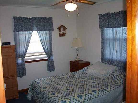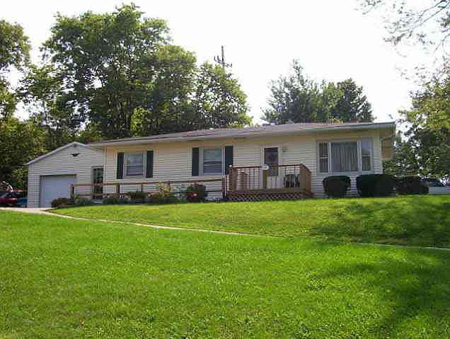 Clean, neat, and well-maintained! Insulation added to outside walls before new vinyl siding installed. New front porch, 2 front doors, carpet in 2 BR's, vinyl flooring in utility room, and includes second driveway. Large kitchen with breakfast bar, lovely deck for entertaining, and 2 storage buildings. Low taxes and city utilities.