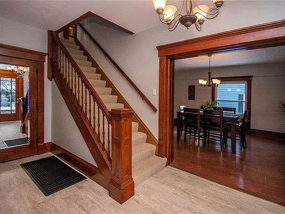 Beautifully updated 4 bedroom home in the heart of historic Hartville. The main level features a large kitchen with brand new appliances, formal dining room, large living room with bi-fold French doors, master bedroom with full bathroom and 9' ceilings throughout. Walk through the spacious foyer and upstairs to three large bedrooms and updated full bathroom. Bathroom has jetted soaker tub, dual head shower stall, and tons of storage! This home also features a high efficient Carrier natural gas furnace with brand new Carrier central air conditioning system, vinyl siding and new double hung windows updated in the past few years. Outside you will find a 12'x16' deck off of the kitchen that overlooks the partially fenced-in backyard. A sidewalk leads from the storage barn to the house and around the side yard to the large front porch. There is also a full basement with direct access from backyard and a large attic with lots of possibilities. This home is move-in ready and is less than a mile from Quail Hollow State Park. The charm of all of the boutique, resale, donut and coffee shops are close by and The Hartville Marketplace and Hardware are also just a short drive away!