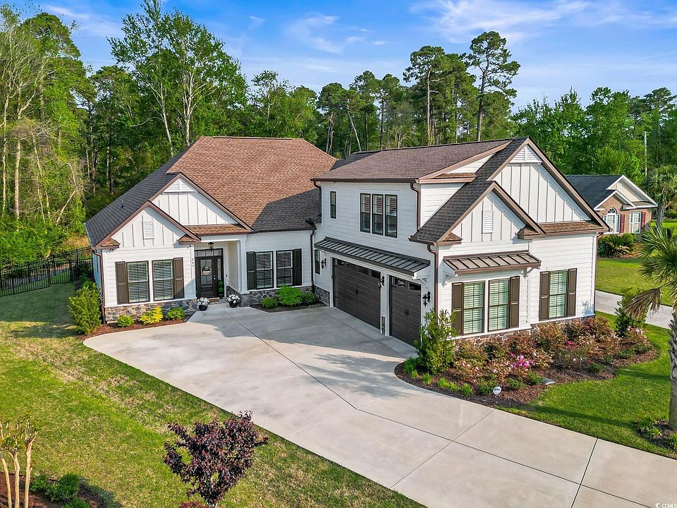 Immaculate, almost-new 4 BR/3.5 BA low-country style home with your own private swimming pool and backs to conservation area for privacy! Bright, open, split bedroom floor plan that offers plenty of natural light and loaded with upgrades. Office could be converted to 5th bedroom, and all additional bedrooms are spacious with lots of storage and closet organizers in each. Family Room boasts a stone fireplace, tray ceiling with boxed beams and is open to the gorgeous Kitchen. With loads of cabinet space, the Kitchen also features a gas stove, quartz counter tops and spacious island with farmstyle sink. First floor Master Suite is huge and overlooks the pool, while also offering a generous shower, double sinks, and a massive walk in closet with an island. Backyard oasis is to die for, with a stunning pool perfect for those hot days, pavers, outdoor living area and fenced yard offering plenty of privacy. Don't miss this one! Close to all Myrtle Beach has to offer, including many fine restaurants, shopping and of course, the beach!