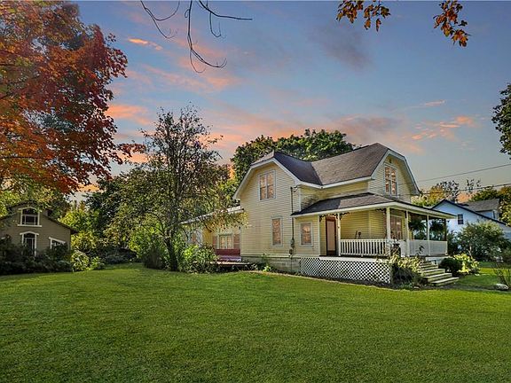 Situated on a double lot on a quiet street, this home once the back addition and the renovation projects are complete, will be close to 2,000 SF. There are many updates throughout the home from solid oak flooring, granite countertops, newer tilt windows, insulation to electrical. On the first floor you will find a spacious custom kitchen with oak cabinets, wide-plank pine flooring and vaulted ceilings, an updated living room overlooking the covered outside porch, a first floor office with built in oak shelving, a first floor bedroom and a half bath/first floor laundry room. On the second floor there are two more bedrooms and a full bath. The 300 SF +/- two-story addition is framed at the back of the house that awaits finishing, a master bedroom? a large family room? There is also a poured concrete slab, ready for a 2-car garage and the foundation for a breezeway. A work shed is at the back of the property and there are construction materials that will be left behind to complete your projects. Due to the unfinished work at this home, a cash offer is needed.