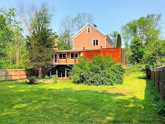 For almost 60 years, this home has been owned and thoughtfully cared for by the same family. Old world German craftsmanship is evident in the design and details from the handmade kitchen cabinets to the brick fireplace in the family room. Built in 1896, this sturdy two story 3-Bedroom, 2-Bath home offers bright new Hickory hardwood floors in the living room, which also features a stunning 10-foot wide bow window, the Dining room and the skylit Sunroom. The main level also includes a large family room with brick fireplace and a full bath. Upstairs you"ll find three bedrooms and a full bath, including a full finished attic not included in the square footage. If you love the outdoors you"re going to love this house! Starting Within a completely fenced in yard are beautiful mature perennial gardens complete with an elegant front arbor and front gate. Relax and entertain your guests on over 900 square feet of side and rear composite decks with down cast night lighting, featuring a spectacular 6-person Arctic Frontier hot tub spa with an 8ft high solid Redwood fenced privacy enclosure, outdoor shower and beautiful outdoor kitchen with wet bar, refrigerator and granite countertop. If this is not enough, just walk across the street and you are on the 22-mile long, Wallkill Valley Rail Trail, which extends from Gardiner to the City of Kingston, which is less than 20-minute bike ride away.