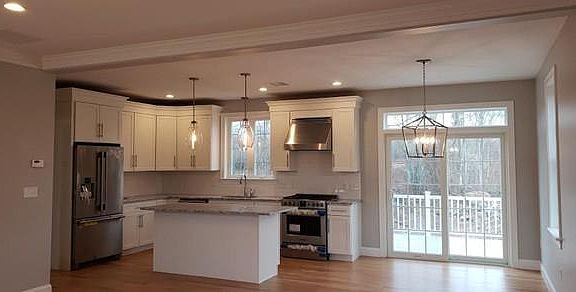 - Kit Dscrp: Flooring - Hardwood, Countertops - Stone/Granite/Solid, Kitchen Island, Stainless Steel Appliances, Open Floor Plan, Recessed Lighting, Balcony / Deck, Slider, Gas Stove, Lighting - Pendant