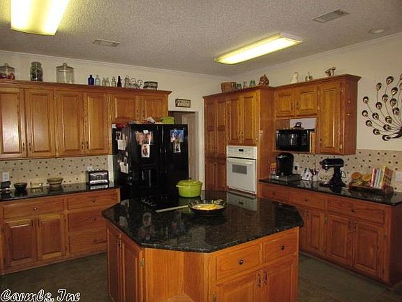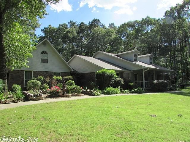 BISMARCK-Close to Lake DeGray-2857 sf Brick home with 32x48 shop building on 6 acres! Large gourmet island kitchen with granite and pull outs, open dining, living area with beautiful stone fireplace, sunroom, MBdrm with walk-ins, Mbath with wall to wall tile walk-in shower, full bath with tile floors, large guest bedrooms with full bath w/ double vanity, upstairs bonus room, and office area. Paved drive. A few fruit trees. Shop building has full bath. Lots of wonderful features you will love! 3 zone HVAC