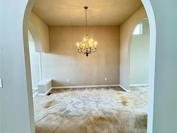 The price per square foot will have you running to this home. A Buyer with the budget to remove carpet and pad and replace all flooring with their own personal choices will increase the value and beauty of this home. Home is sold "AS IS". Seller will not make any repairs or provide any inspections. Enter from the two story tall entry foyer and you'll notice a lovely wood Herringbone floor along with several exquisite light fixtures or chandeliers in the entry foyer and living space. You will enjoy arched thresholds and columns flanking certain living areas. The floor plan is very open while still providing 3 separate living areas. The main floor master suite is sure to please anyone who wants to spend most of their time on the main floor. Other benefits are main floor laundry, enclosed sunroom addition and the potential to build out a deck to fully enjoy the generous .44 acre yard which is enclosed with black aluminum fencing. Additional Rooms: Sun Room