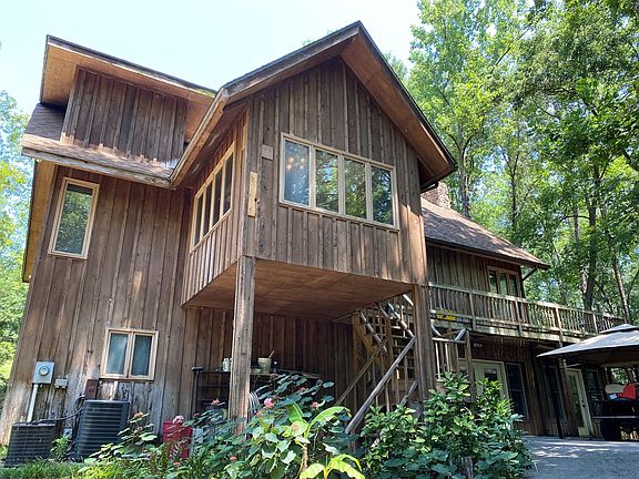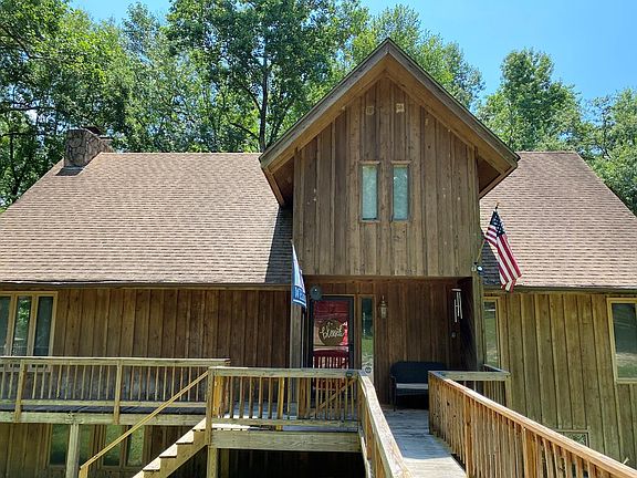 Private 5bd 3ba home on 2.9 beautiful wooded acres, gentle slope to water. Dock w/ lift, cypress exterior, wrap around deck. Large family room with cathedral ceilings,stone fireplace and floor to ceiling windows. Large master suite w/ a loft overlooking the water. New luxury vinyl plank flooring, kitchen is open to family room & overlooks water. Downstairs den w/ FP, Large bdrm, bath & workshop.