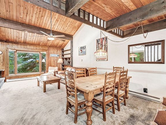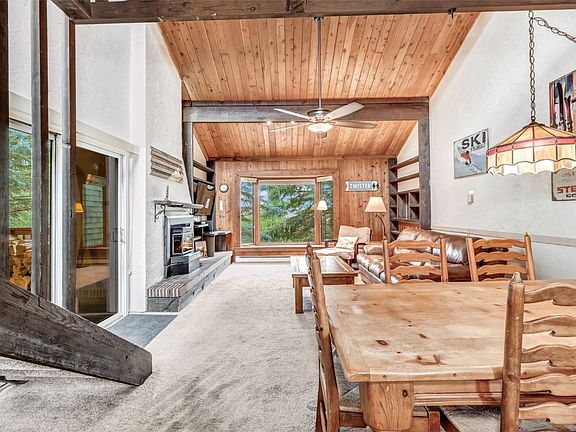Rarely on the market, a wonderful 2 bedroom plus loft condo at Ski Ranch on Mt Werner complex. This unit is tucked close to the Steamboat Ski Area, located in the Green Zone and has a short-term rental license in place. You can walk to the base area and experience all the new amenities including the Range Food Hall, new Wild Blue Gondola, seasonal outdoor ice rink and Burgess Creek splash area. The unit features a recently remodeled kitchen which flows into the dining area, the great room with vaulted ceilings and wood burning stove. The primary bedroom features an ensuite with a full bath. The second bedroom has a sliding glass door that opens onto a spacious deck. Off the loft is a cozy deck with views to the ski area. The entire complex had a new roof installed two summers ago.The complex has its own hot-tub. There is a bus stop right out the front door that gives you access to all of Steamboat Springs, including the downtown area. This is your perfect ski area getaway!