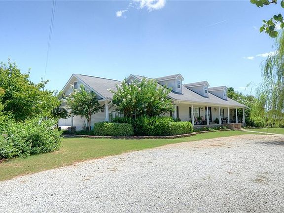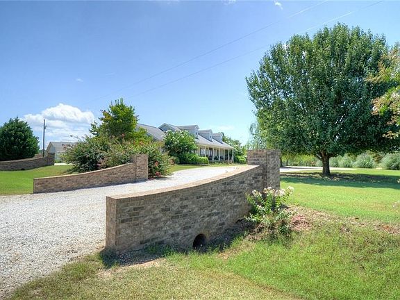 This one level gem is nestled on 12+ pristine acres! House is immaculately maintained, & grounds & stables are equally impressive! Home offers 2 master suites, lots of flex spaces, & tons of updates. With a giant willow tree gracing the front drive & a long covered front porch lined w/ rocking chairs, this home radiates southern charm. The allure continues indoors, where you'll find a spacious great room w/ wood burning FP, an updated kitchen w/ granite countertops, an enormous laundry room/home office w/ built in desk, oh & did we mention 2 masters?! Master #1 boasts an attached private sitting room (which would also make a great nursery) & a stunning en suite bath w/ glass shower & extended granite vanity w/ natural stone basin sinks. Back outside, you'll find not only the gorgeous front porch but also a huge open back patio: the opportunities for outdoor entertaining here are endless, & this giant, flat backyard is perfect for a pool! Stunning landscaping inc