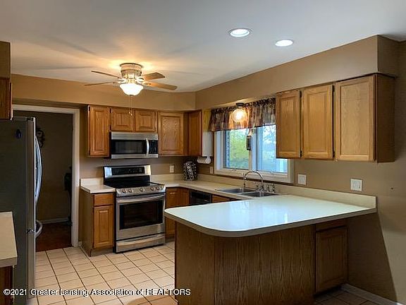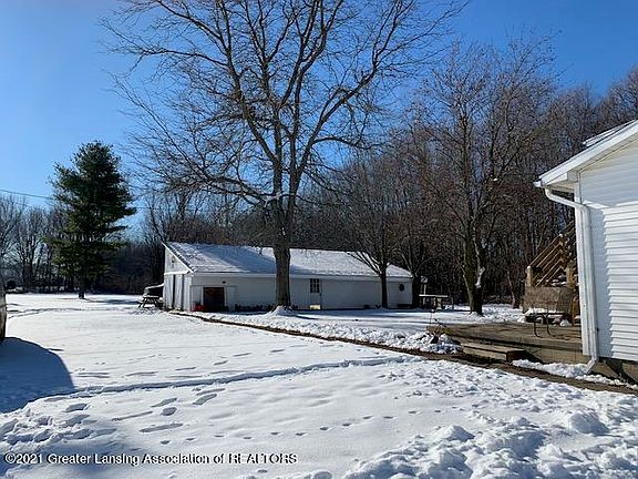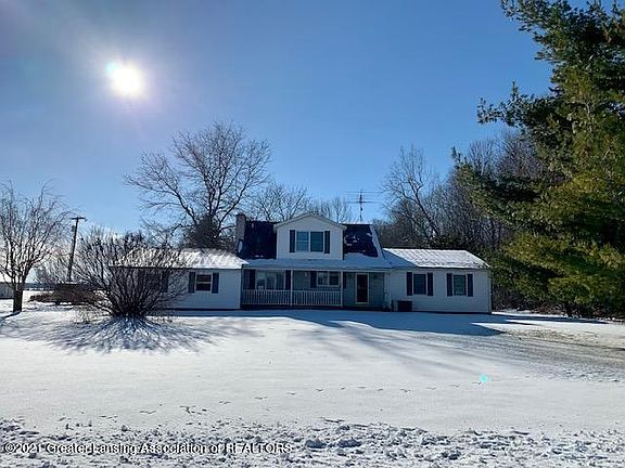 Country living at it's best. Over 4 acres of usable land 10 minutes from MSU with 3 large out buildings with their own power supply. House has full basement and separate kitchen, bedrooms, living room, bathroom and dining room on 2nd floor that could be rented out with it's own stairs for access and balcony with new carpet. Hardwood flooring and tile throughout the first floor and all fresh paint. Newer set of stainless steel appliances all stay. Open house Sunday July 10th 12-4.