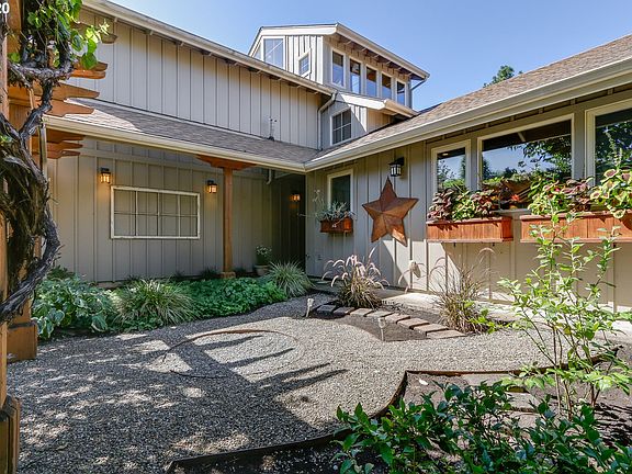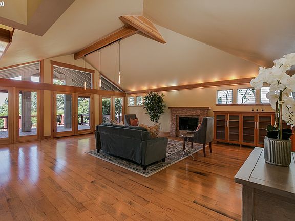 Wonderful College Hill Views from the top of Eugene's most sought after neighborhood. Home boasts custom features thru-out including: open beam log accents, River Roofing roof (2018), maple engineered floors, cabinets by George Goldthwaite, & an art studio w/ a sleeping loft & skylight! Level driveway & flat backyard w/ terraced gardens & alley access. Large covered deck w/ hot tub. Main level bedroom suite & 2nd master suite upstairs. Private, eagle's nest loft-office perched on the top floor!