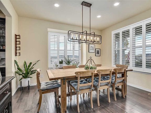 This stunning home in highly desired Meadows neighborhood, has 6 beds/5 baths/ 3 car garage, solar panels and a finished basement. The gorgeous open concept family room has an impressive two story stone fireplace with custom mantle and windows with plantation shutters; wood flooring throughout the main floor and staircase complete with rod iron that makes a modern statement. A main floor bedroom with a closet, could be used as an office and a full bath. Enjoy the grand, open eat-in kitchen with upgraded pendant lighting and tile, over 9ft island with sink and seating, double ovens, 5 burner GAS range, pantry, butlers pantry and a formal dining room. Upstairs the large master suite has a grand 5piece master bath. Plus 3 more bedrooms, 1 with ensuite bath, the other 2 share a jack-and-jill bath each room with own vanity sink and pocket door. All bedrooms are complete with ceiling fans & top down or bottom up shades. The home also features a coveted 2nd floor laundry room with utility sink, and direct entrance to the master closet. Large finished basement has a family room, 6th bedroom with walk-in closet and full bath. A wonderful bonus room is used as a "She Shed" craft room. The basement features loads of storage! Enjoy summer evenings in the fully landscaped and fenced backyard. Backyard was specially graded to maximize flat space across the large corner lot. Entertain on extra large covered Trex deck, an eat-in granite bar and a sunken hot tub to soak in the mountain view. Expansive deck still has plenty of room for additional outdoor furnishings. There is also an extra side patio on the North side - ideal for a fire pit. Enjoy the large 3 car garage with space for toys and a workbench. Located in the heart of the Meadows access to Grange and Taft House, 2 pools, community activities. Close to parks, mountain biking trails and recreational areas. Walking distance to Aspen View Academy! Solar panel agreement w/Sunstreet will be transferred to Buyer at closing.