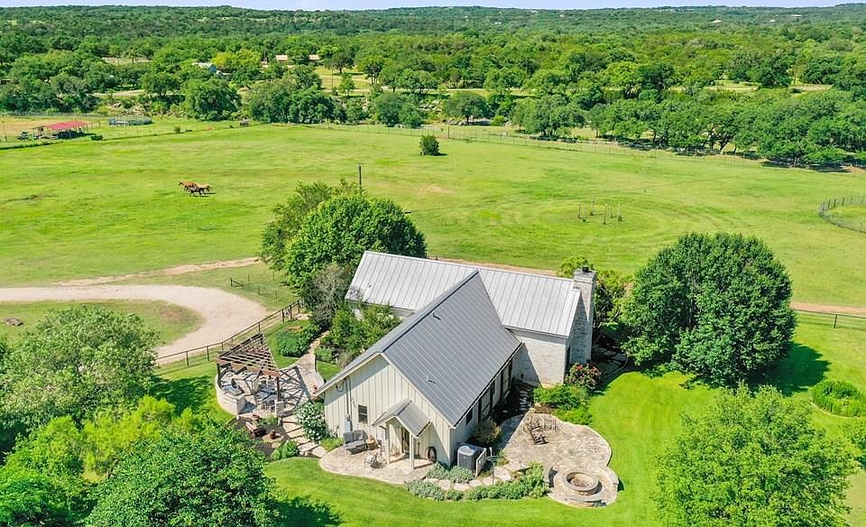 This 10 acre Wimberly ranchette is absolutely stunning and has it all! The home is a custom rock 2 bd 2 ba w/ an office that offers 1938 sq. ft. Open concept w/ a large master suite, custom blinds, granite counters, and more. The outdoor living space is beautiful w/ amazing landscaping including sprinkler system, outdoor kitchen area, pipe yard fencing, and firepit. There is a great 6 stall horse barn with turnouts and nice feed storage area and tack room. There is also a nice 40 x 60 metal workshop on a slab. There is a creek that runs thru the property and runs water most of the year.