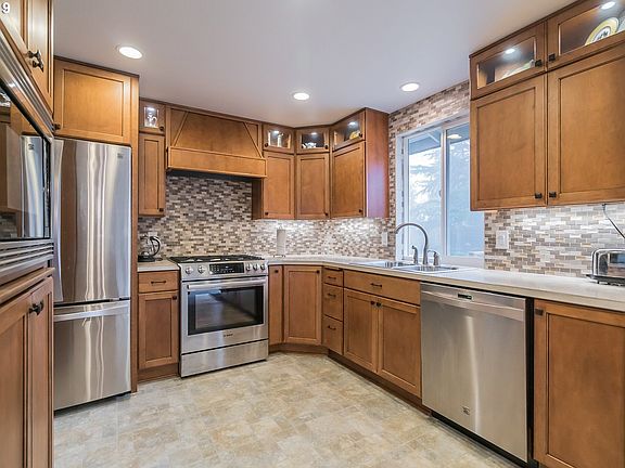 Wow! Landscaped & fully-remodeled home on quiet cul-de-sac & territorial views. Amazing kitch remodel w/top-end cabinets & stainless appliances. Quartz counters & tile backsplash. All new bathrooms w/tiled showers & heated floors!. Lower level could be sep living quarters w/ laundry/bath/kitchenette + studio bedroom w/gas fireplace. Newer furnace,A/C, roof, windows. Large, secluded yard w/deck. RV space.