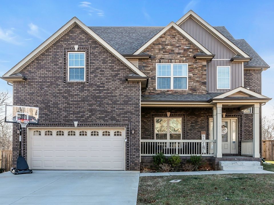 This beautiful two-story, partial brick home seamlessly blends modern style with functionality. Located in a peaceful neighborhood just minutes from Interstate 24, shopping, and dining, it offers both convenience and tranquility. Upon entry, guests are welcomed into a foyer adorned with elegant pillars, coffered ceilings, and refined craftsmanship. The second-floor owner's suite provides a private retreat, while the spacious living room with a cozy fireplace is perfect for entertaining. Step outside to the covered back deck, where you can relax and enjoy the scenic fenced in yard for added privacy. Don't miss this incredible opportunity!