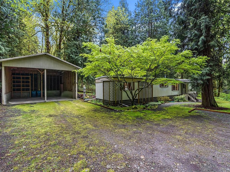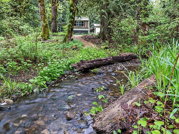 Tiger Mountain priced to sell. Amazing Light and bright level acre. The site has outbuildings including a massive nearly 700sqft two bay RV height garage (just add doors to the front) and a 225sqft outbuilding with a huge covered side area. Tranquil setting with a greenbelt on three sides and babbling brook running by. The impeccably maintained home features a newer roof, newer vinyl double pane windows, new plumbing and new tub/shower. Most of the flooring is also new, along with subfloor replacement. Fresh interior paint. Woodstove can heat the entire home. Turnkey home, or have it as a great investment. It was renting for $1800/month and would likely rent for more now. Convenient commuter location and award winning Issaquah Schools.