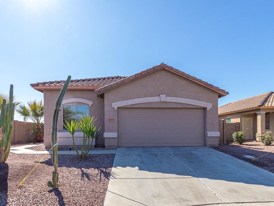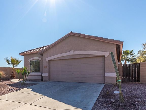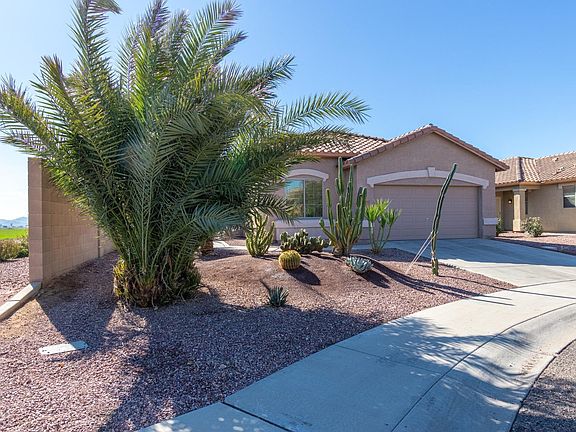 Step inside this fantastic single story 3 bedroom 2 bathroom home that sits nestled in the amazing city of Buckeye! Upon entering this home, you are greeted with tile & carpet flooring, warm color palettes and tons of natural light throughout! The eat in kitchen boasts oak cabinetry, breakfast bar, island, and ample prep space. The spacious bedrooms offer plenty of room for sleep, study and storage. The large master bathroom showcases a shower/tub combo and walk-in closet. Enjoy your large backyard that features a covered patio, several palm trees, putting green and area perfect to set up a grill & BBQ! Don't wait! Make your move and book your showing today! This gem is sure to impress! Most furniture available on a separate bill of sale.