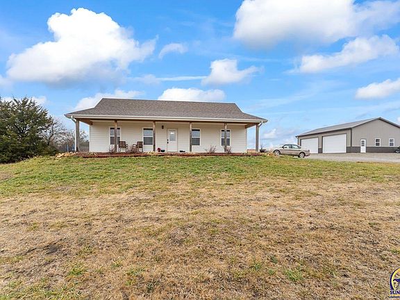 Beautiful country setting with newer ranch style home on 10 acres nestled on a meadow on the edge of town. 3 bedrooms, 2 full baths with kitchen/dining combo. Covered front porch fantastic for early morning coffee and sunrises. Large covered patio on the back of the house great for BBQ's and relaxation with friends and family. Metal outbuilding with electrical service and concrete floor, 2 overhead doors. This property would make a great hobby farm only a few minutes from all the amenities of the city. Storm shelter.