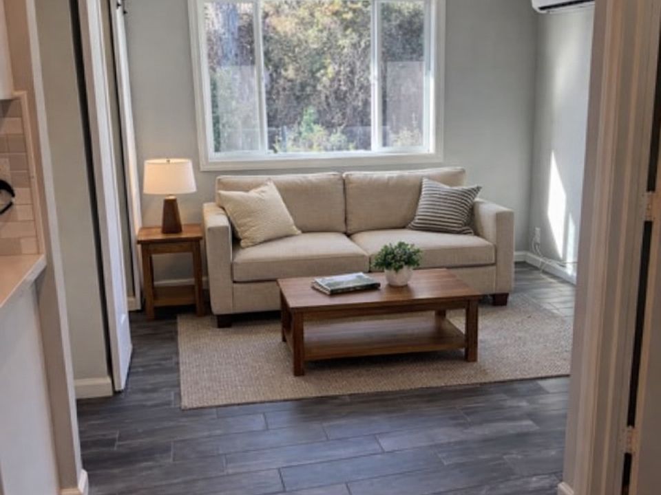 Experience tiny living with HUGE outdoor features the Southern California way! This charming cottage lives big where it counts from the full-sized stainless appliances to the oversized outdoor space designed for relaxing, entertaining, and soaking up sunshine-filled days. Inside offers everything you need for comfortable, efficient living: Full-size stainless steel appliances (rare in a tiny home!) Energy-efficient heating & air Dual-paned windows that keep utilities low Hard-surface porcelain wood-look flooring throughout no carpet ever Stackable washer & dryer available with a long-term lease The kitchen is larger than what you'll find in many standard homes, with room to cook, prep, host, and spread out. In the bedroom, a previous tenant maximized the niche using custom IKEA cabinets that fit perfectly shown in the photos for inspiration. These are NOT included, but demonstrate how smartly this cozy space can be customized to live tiny but mighty. Outdoors is where the home truly shines: Fully fenced private courtyard and yard Covered patio that acts as a second living room year-round Space to garden, plant herbs, create raised beds, or start your own veggie patch Plenty of room for BBQ nights or hanging with friends Your own private driveway Available February 3, 2025, and possibly sooner. Seeking a long-term tenant who will make this quaint house their home. Showings by appointment only. Pricing reflects a one-year lease. Washer and dryer can be provided with a long-term rental commitment. Pets welcomed humans tolerated (Okay, humans welcome too but furry friends get VIP status!) Please note one shared wall and shared utilities You have your own separate private tiny living space, courtyard, and driveway, the utilities are shared with the neighboring house. This setup helps keep monthly costs low without sacrificing privacy! Tenant pays all utilities, Electric, propane, water which are divided with the main house. Each tenant pays for their own trash service. No smoking on property. Tenant must have renters insurance.