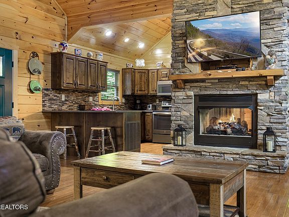 Escape to the serenity of the Great Smoky Mountains with this charming, secluded cabin nestled in the heart of East Tennessee. 'Hillbilly Hylton' offers the perfect blend of rustic charm and modern comfort, featuring 3 spacious bedroom suites, 4 full bathrooms, and a cozy sunroom ideal for year-round relaxation. Enjoy the warmth of the gas log see-thru fireplace, and appreciate the thoughtful updates throughout, including newer HVAC, bathrooms, furnishings, and a relaxing hot tub.