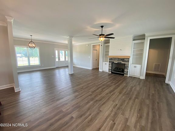 • Master Downstairs, Walk-in Closet(s), High Ceilings, Bookcases, Kitchen Island, Ceiling Fan(s), Pantry, Walk-in Shower, Blinds/Shades, Gas Log, Walk-In Closet(s)