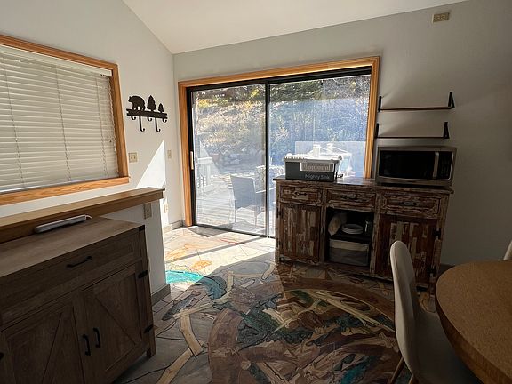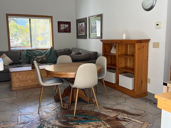 Sunny, fully furnished 1 bedroom, 1 bath apartment over the garage of the home with a separate entrance. Cozy and nicely appointed space with living area, a bedroom and full bathroom. There is a deck off of the living room to enjoy the wonderful back yard area which is very private and secluded. The home is surrounded by beautiful trees and sits on a knoll across from the June Lake Campground. There is not a kitchen in the apartment, so a microwave and toaster oven will have to suffice for preparing meals. The home does have a refrigerator. The owner has provided a camping sink to use for washing dishes. Parking is limited to one small vehicle. Utilities are included in the rent amount, however there will be a limit/cap for electricity and propane. Wifi is included and TV will be streaming only. The rent is $1800 monthly and the owners are open to a 6 month seasonal lease or a 1-year lease. Pamela Mowat-Agent June Lake Properties CA DRE#01702763 Fully furnished. Available immediately. No pets allowed and no laundry facilities. Rent is $1800 and includes utilities and security deposit is $2500. Tenant is responsible for disposing of their trash, no trash service at the property.