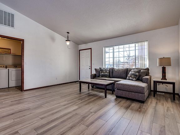 Immaculate care and condition! New laminate flooring & carpet, split bedrooms, covered porch, fully fenced, RV Parking, lawn sprinklers, includes washer, dryer & refrigerator. Seller to install central A/C prior to close of escrow.