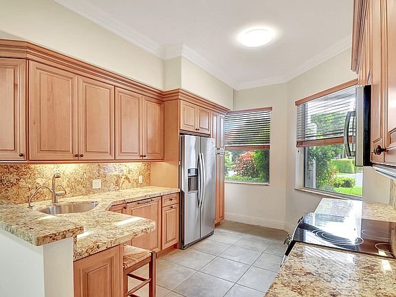 Beautiful first floor condo in Clubside Point of Broken Sound. If you admire elegance and high quality finishes this is the one. 3 bedrooms, 2 1/2 baths wrap around glass and screened in porch and a beautiful outdoor patio. All surrounded by stunning wide lake water views. Jerusalem limestone honed tile throughout main living spaces. Crown moldings. Large eat in kitchen family room. Wood cabinetry , beautiful granite countertops with matching seamless backsplash Stainless Steel appliances. California closets throughout. Zebra shades. 2022 AC. Primary bedroom is oversized and has water view as well.Primary bath has dual sinks and modern shower. Clubside Pointe is a top location within walking distance to all - Clubhouses, pool, tennis, gym, pickelball. Walk in and feel right at home.