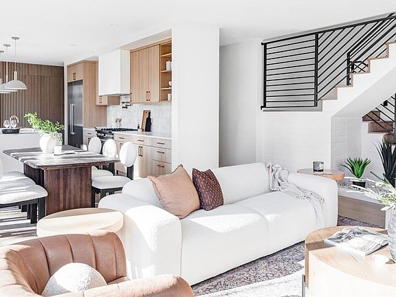 Discover the perfect blend of modern design, mid-century elegance, and Palm Springs-inspired style in this Work Shop-built masterpiece in the vibrant Sloans Lake neighborhood. Designed for seamless indoor-outdoor living, the home boasts floor-to-ceiling glass and dual center meet sliders, filling the interiors with natural light and connecting to a private side yard oasis. The sleek kitchen is a chef's dream, featuring Bosch appliances, a large island with waterfall quartz countertops, and a wood slat feature wall concealing a hidden prep kitchen. The prep kitchen includes plentiful cabinets and a second dishwasher, ideal for hosting. The living room, with a gas fireplace flanked by built-ins and stacked white brick extending to the ceiling, is perfect for relaxing or entertaining. The main level offers two spacious bedrooms connected by a Jack-and-Jill bath, perfect for offices, a guest room, or flexible use. Custom finishes like bespoke tile and hand-selected lighting add a level of detail rarely seen in today’s market. Upstairs, a cozy window seat offers neighborhood views, and the luxurious primary suite features a spa-inspired wet room, a walk-in closet, and a custom feature wall. Two additional bedrooms with 9-foot ceilings and attached baths provide ample space. A convenient laundry room completes this level. The third floor is a show-stopping retreat with an expansive living space, breathtaking mountain views, a fully equipped wet bar, a sixth bedroom and bath, and a rooftop patio perfect for enjoying city and mountain vistas. The lushly landscaped front yard adds curb appeal, while the south side yard offers effortless access for alfresco dining or entertaining. This Sloans Lake home exemplifies Work Shop's renowned craftsmanship with its distinctive finishes, unparalleled design, and seamless fusion of form and function.