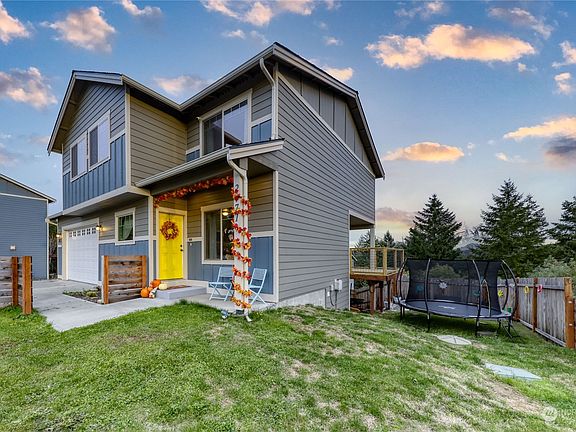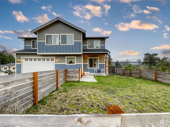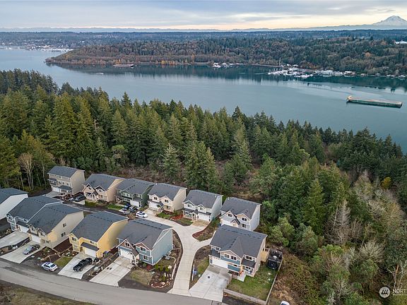 4 Bedroom Mountain & Puget Sound View Home. Granite counters, laminate plank flooring, stainless appliances, view deck, fenced yard, & mini split units to keep home cool in summer. Recently updated w/custom interior paint, expanded outdoor living space w/fire-pit, and LED lighting. Primary bedroom with walk-in-closet and 5 piece bath featuring tile surround tub and shower. Huge views of Rainier and Sinclair Inlet from primary bath, upstairs living room, main floor and deck, beautiful sunrise and sunset colors splash over the home year round. Home has 3 separate living spaces, large office/den off the kitchen, main floor living room, and huge upstairs loft, perfect for TV/game room. Minutes to highway, PSNS, Seattle Ferry, & more.