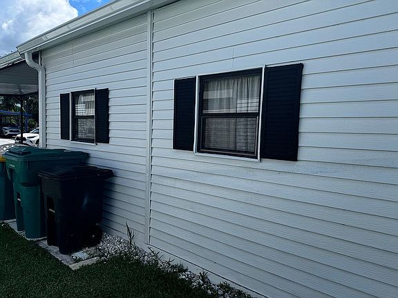 This beautifully fully remodeled updated home is MOVE-IN ready! All appliances (stove, fridge, washer/dryer) convey AND lot rent is lowest in Brevard at $640.00! The outside has great curb appeal with very nice landscaping. The floors are vinyl plank in the whole house with new baseboards. The sub flooring is plywood not particle board. NEW water heater and pex plumbing done in2021. You also have a new AC done in2020. New roof and heavy duty gutters Apr 2024. Fresh paint this past year. The kitchen has been fully remodeled adding lots of storage! Lots of granite counter space and cabinets, pantry, new refrigerator with ice maker, dishwasher, smooth top range, microwave and all stainless steel. The washer and dryer ar conveniently off the kitchen. The dining room is bright with lot's of windows that are hurricane impact a long with the kitchen window. All the other windows are newer and have storm shutters. The living room is a good size with a ceiling fan and new French doors to the Florida room. The guest bedroom can fit a queen size bed, large closet and ceiling fan. The guest bath has a shower/tub combo newer vanity and commode. The master bedroom can easily fit a king size bedroom set. You also have 2 closets one that is walk in and ceiling fan. The master bath has a linen closet, walk in shower with NEW shower doors with 2 seats, newer vanity with soft close doors and commode. The house has new skirting, 2 car carport, door to utility room/workshop with sink, 2 windows and door to out back and plenty of shelves. The Florida room has vinyl windows and screens! Quail Run is one of the PREMIER 55+ parks in the area with pool club house and an array of activities. You will be close to medical facilities, golf, fine dining, 15 min to beach, fishing and all the shopping you could ever want. Lot rent is currently $640.00 which is lowest in the area! Must submit for park approval prior to purchase agreement.