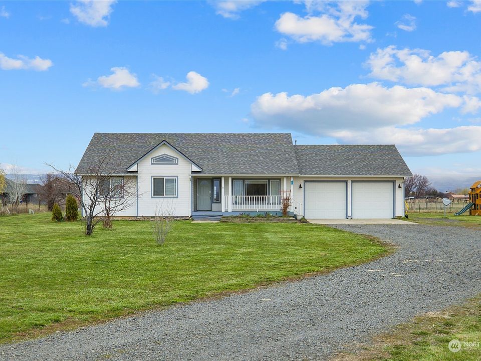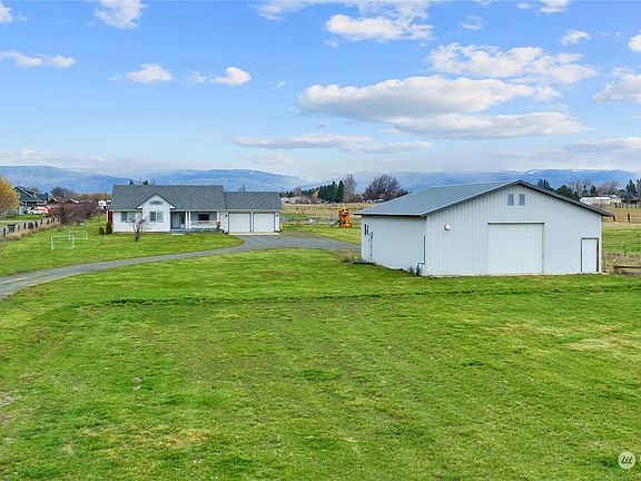 Looking for your own slice of paradise just minutes from town? Look no further than this lovely 3 bedroom, 2 bath rambler on 4.91 irrigated acres. The spacious living area is flooded with natural light, creating a warm & inviting atmosphere. Kitchen is U-shaped with plenty of counter space-appliances included-6 burner gas stove. Primary suite includes a roomy walk-in closet, ensuite & french doors leading to the back deck. Step outside onto the deck and take in the stunning panoramic views of the surrounding countryside. Fenced & set up for horses with 3 pastures & horse shelter. Huge shop(36 X48) with 220 amp power, wielding corner with stainless steal on the walls, insulated & a lift. BRAND NEW ROOF!! A great place to call home!
