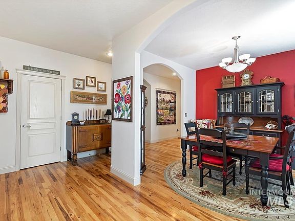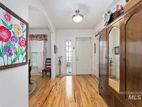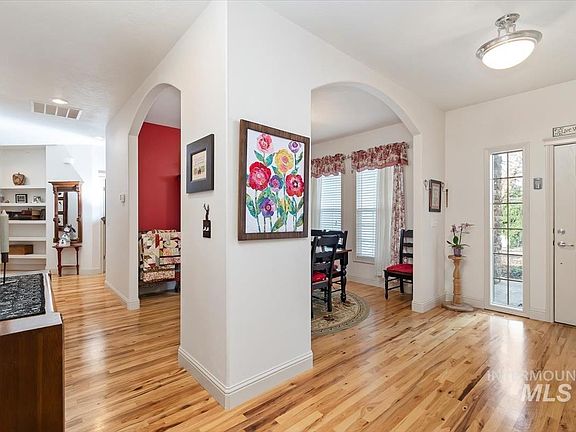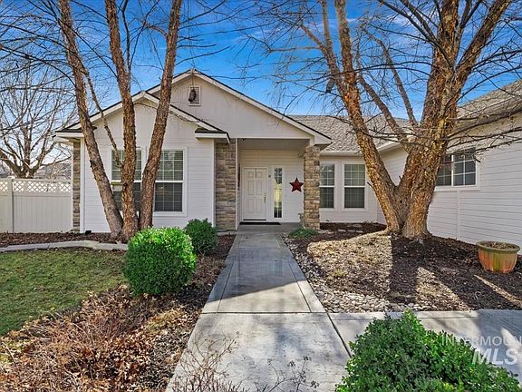 Welcome to your new home! Don't miss out on this rare opportunity to own a piece of tranquility in the sought-after Bridgetower neighborhood of Meridian. This single-level gem exudes pride in ownership with its vaulted ceilings and stunning hickory floors. It boasts a massive bonus space perfect for a media room, game area, or additional family room. The split floor plan design gives space between the 3 bedrooms and the spacious owner suite with patio access. Revel in the expansive master bath with huge walk-in closet & double vanity. The kitchen boasts a pantry, ideal for storage & organization, and a long breakfast bar. With its spacious open design, this home is perfect for comfortable living. Entertain in style in the formal dining area and under the covered back patio overlooking the serene, meticulously landscaped backyard oasis. Crafted with care, it features 36" doorways and hallways, ensuring accessibility for all. Plus, enjoy the refreshing community pools. Don't let this opportunity slip away!